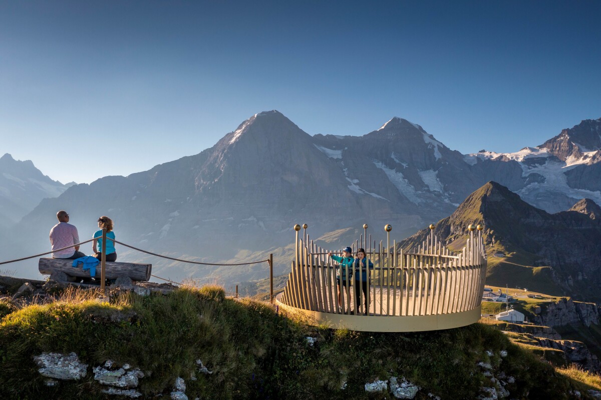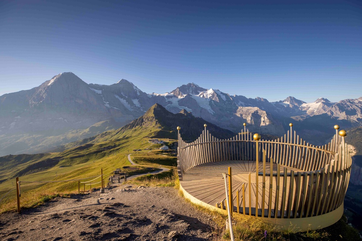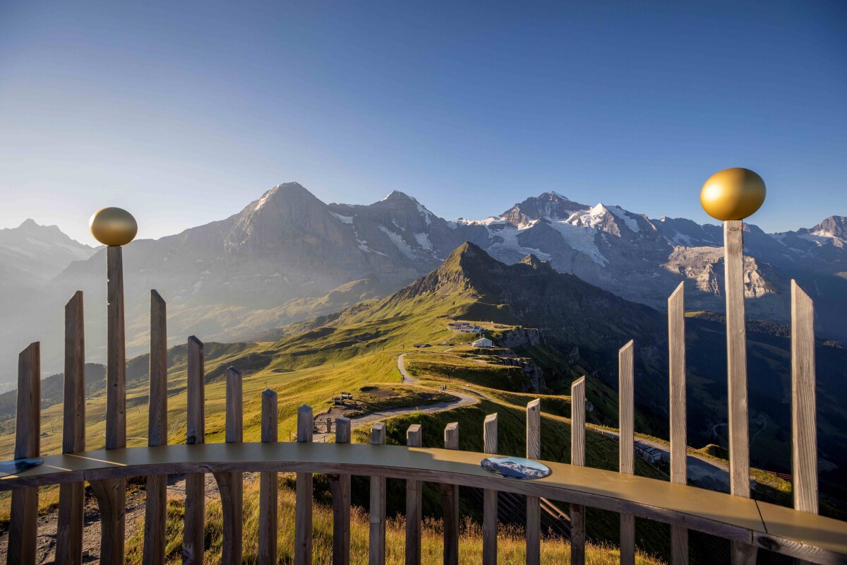 The Royal Walk is a well-developed theme trail that takes you from the Männlichen mountain station (2222 m) to the summit of the Männlichen (2345 m). After 30 enjoyable minutes you reach the crown-shaped viewing platform, where you are rewarded with the phenomenal view of the Eiger, Mönch and Jungfrau. The summit can be visited in Summer and Winter. If you need refreshment, the good things are very close at hand. In just a few minutes you are at the Männlichen mountain house.